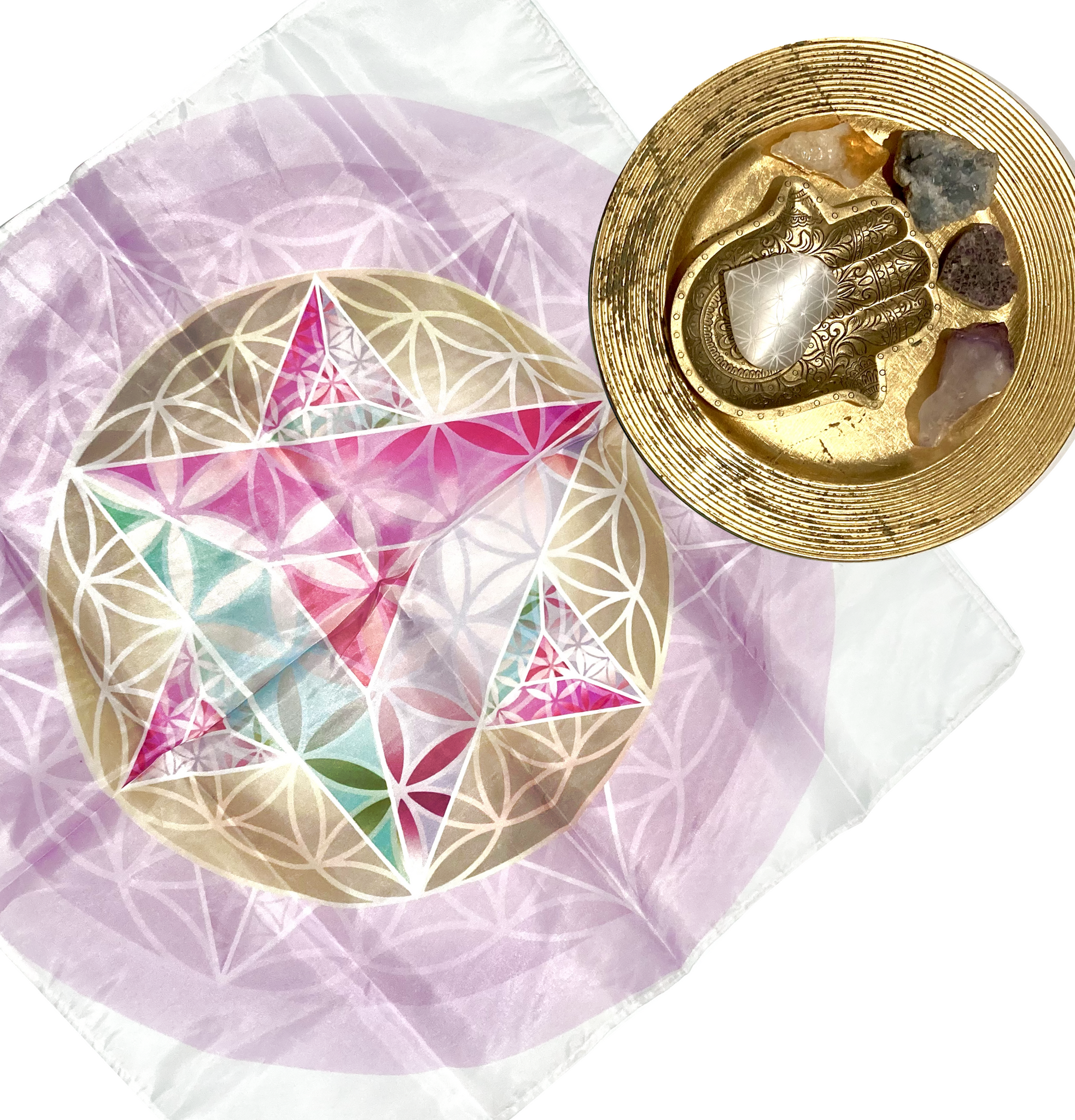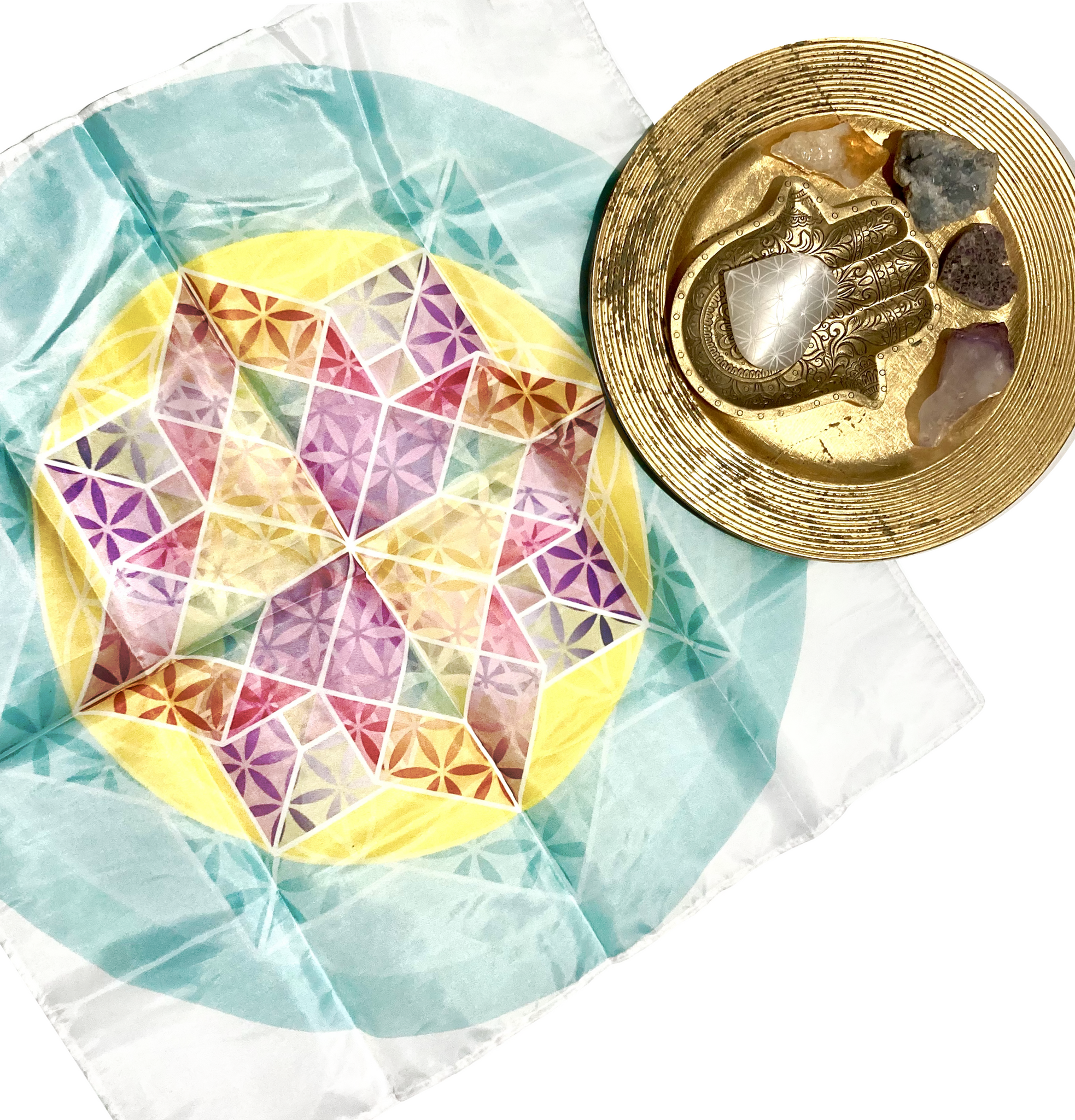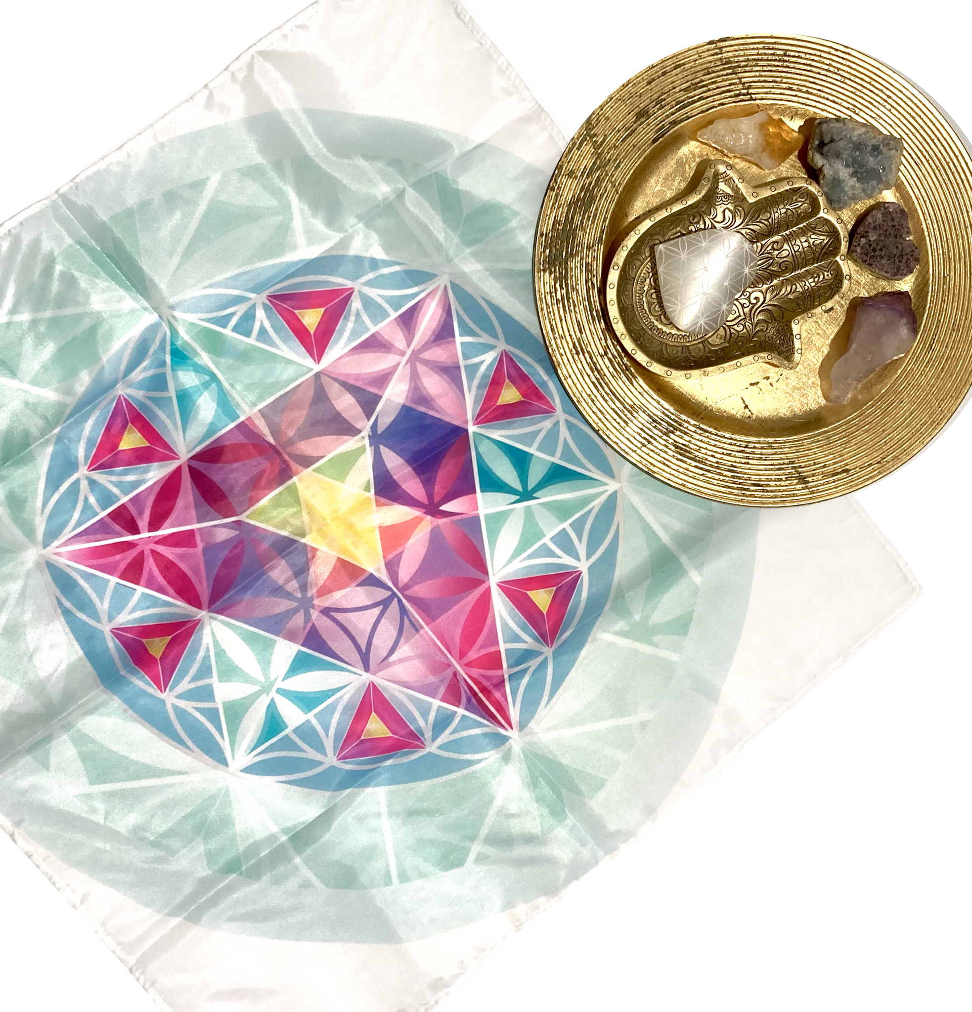 Los portales de Geometría Sagrada están hechos de tela poliester semi trasparente, miden 60x60 cm, son ideales para meditar en solitario y que asciendas la vibración del cuerpo físico para conectar con planos superiores, puedes ponerlos en la cama debajo de la almohada o entre el colchón y tu sábana para elevar la vibración al dormir y recordar tus sueños.